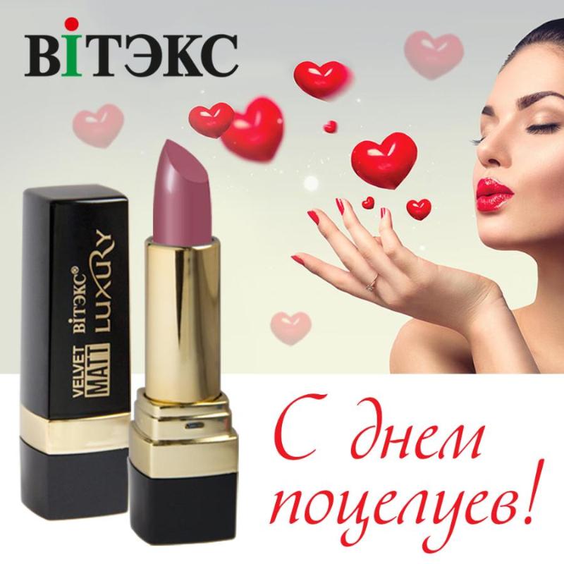 Завтра, 6 июля нас ждет замечательный праздник - Всемирный день поцелуя! Любите друг друга, обнимайте, целуйте, говорите хорошие слова и не только в этот день! А Витэкс и новая линия матовых помад Luxury Velvet Matt помогут подчеркнуть красоту Ваших губ и сделают их необыкновенно манящими и чувственными. Очень скоро в продаже!